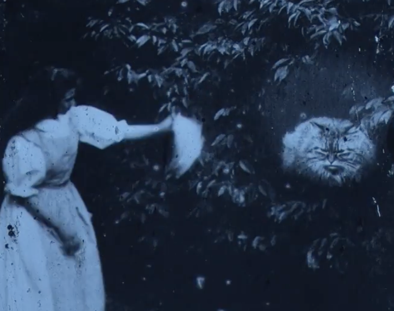Even taking in to account the lost footage, this must have always been a fairly quick paced run through the book’s most iconic scenes. As with a lot of early film adaptations, the assumption was that the audience would already know the story it was based on, which is apparent here where a lot of it is intentionally framed to evoke John Tenniel’s original illustrations from the book (especially obvious in the shot above).